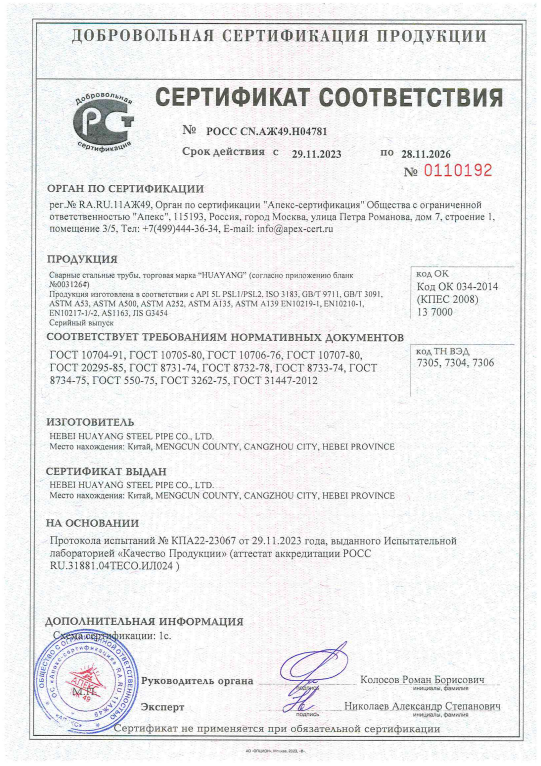 公司現有17條新型的自動化鋼管生產線,包括Φ73-660.4高頻直縫焊鋼管生產線14條、Φ406.4-Φ1422.4直縫雙面埋弧焊鋼管生產線3條,并配備有一條防腐生產線,可進行3PE、2PE、FBE、2PP、3PP防腐處理,同時還可提供鋼管深加工服務。公司擁有先進的理化實驗室,可承擔鋼管的各項物理及化學檢測與試驗。公司先后取得了ISO9001質量管理體系認證、ISO14001環境管理體系認證、ISO45001職業健康安全管理體系認證、特種設備制造許可證、API5L和API2B認證證書、歐盟CE認證、俄羅斯GOST認證、中海油入網證、安全生產標準化二級企業等標準質量體系認證。